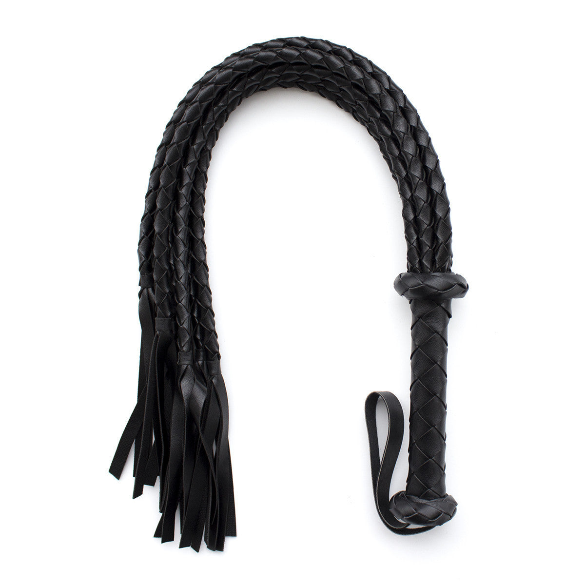 Specifications: 8-strand black leather multi-braided whip black, 8-strand red leather multi-braided whip red, 8-strand black plus purple leather braided whip with studs at both ends