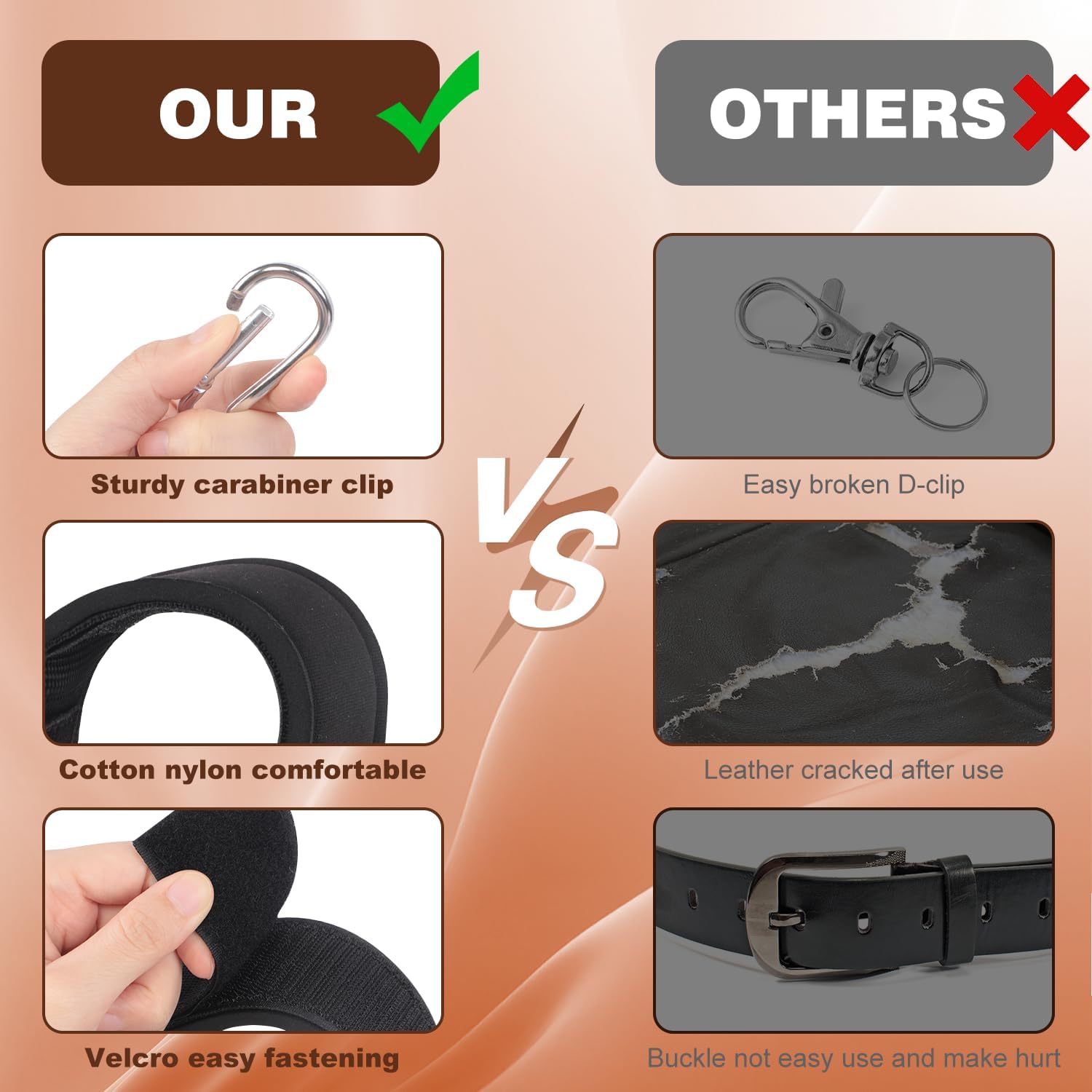 - ➷Soft Cotton Materials For a Genuine Feel - Constructed with sturdy cotton material that is soft and gentle on the skin, but provides a satisfying feel and aesthetic. And the metal buckles are made with a carabiner clip for even more durability which can stand up to most styles of rougher play!