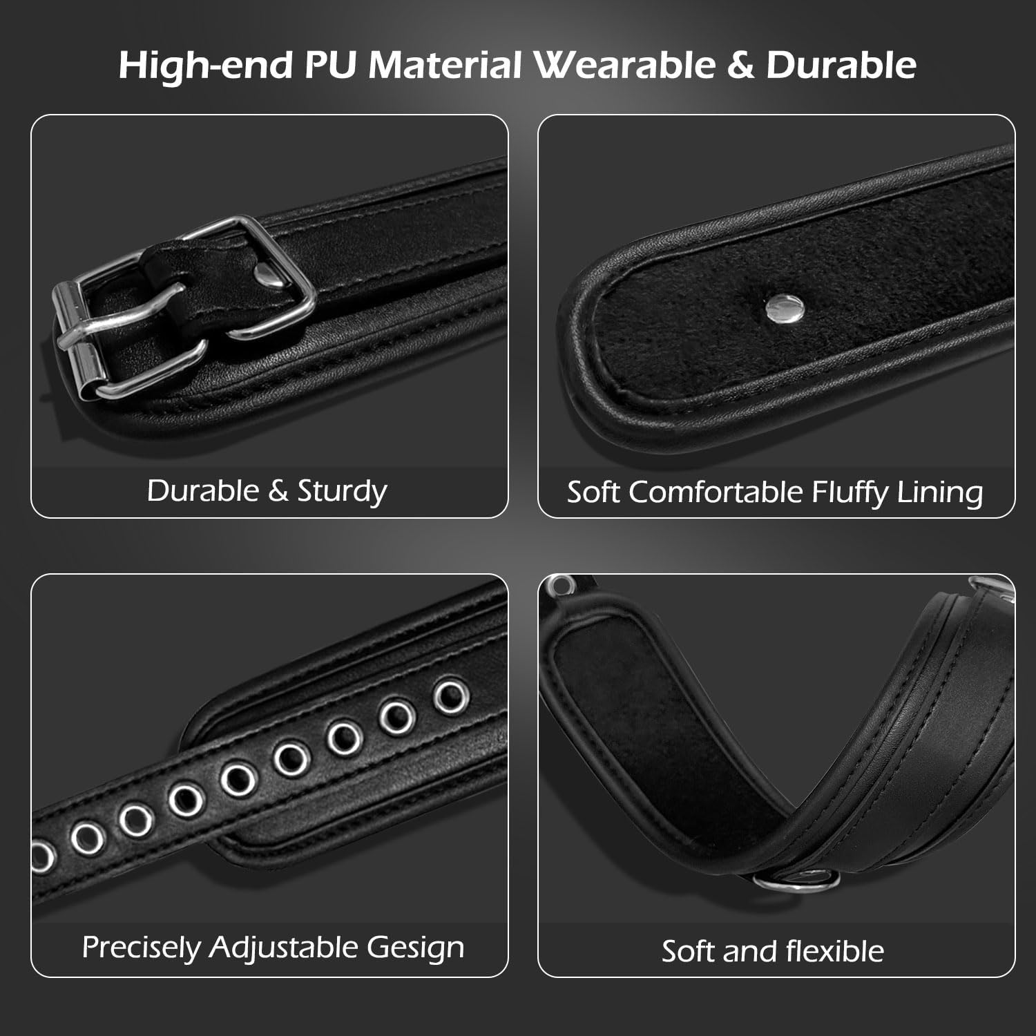 - [ High-end PU Leather Material Wearable & Durable ] - Unlike other bdsm set rough and cheap leather or nylon materials, the outer leather material of our bondage cuffs is sturdy and durable, lined with very soft, plush material. While improving the overall texture, it can ensure the durability and comfort of the product, allowing you to avoid hurting your skin during long-term intense sex games.