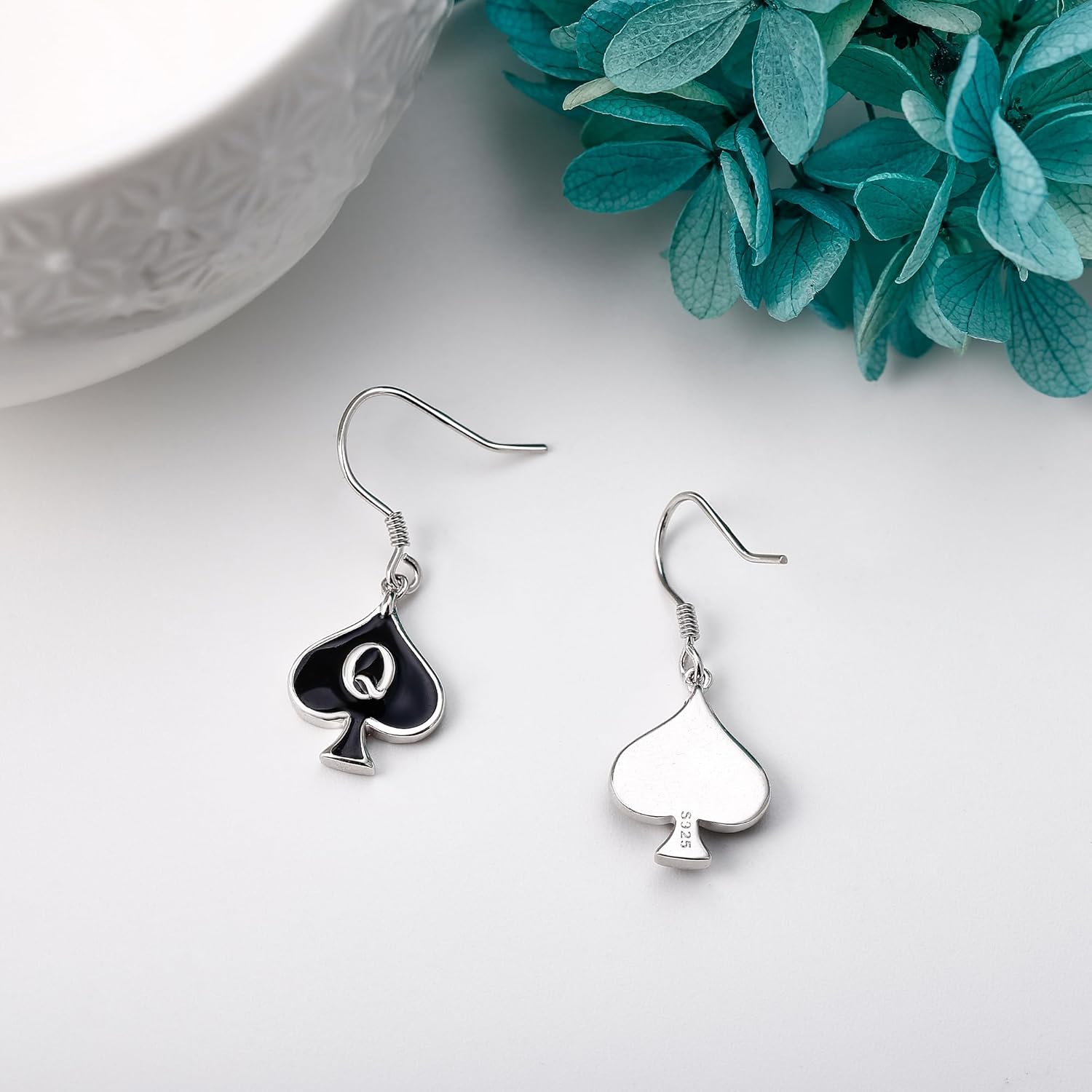 QUEEN OF SPADES Earrings 925 Sterling Silver Card Dangle Drop Earrings Unique Queen of Spades Jewelry for Women HotWife Wife Lover