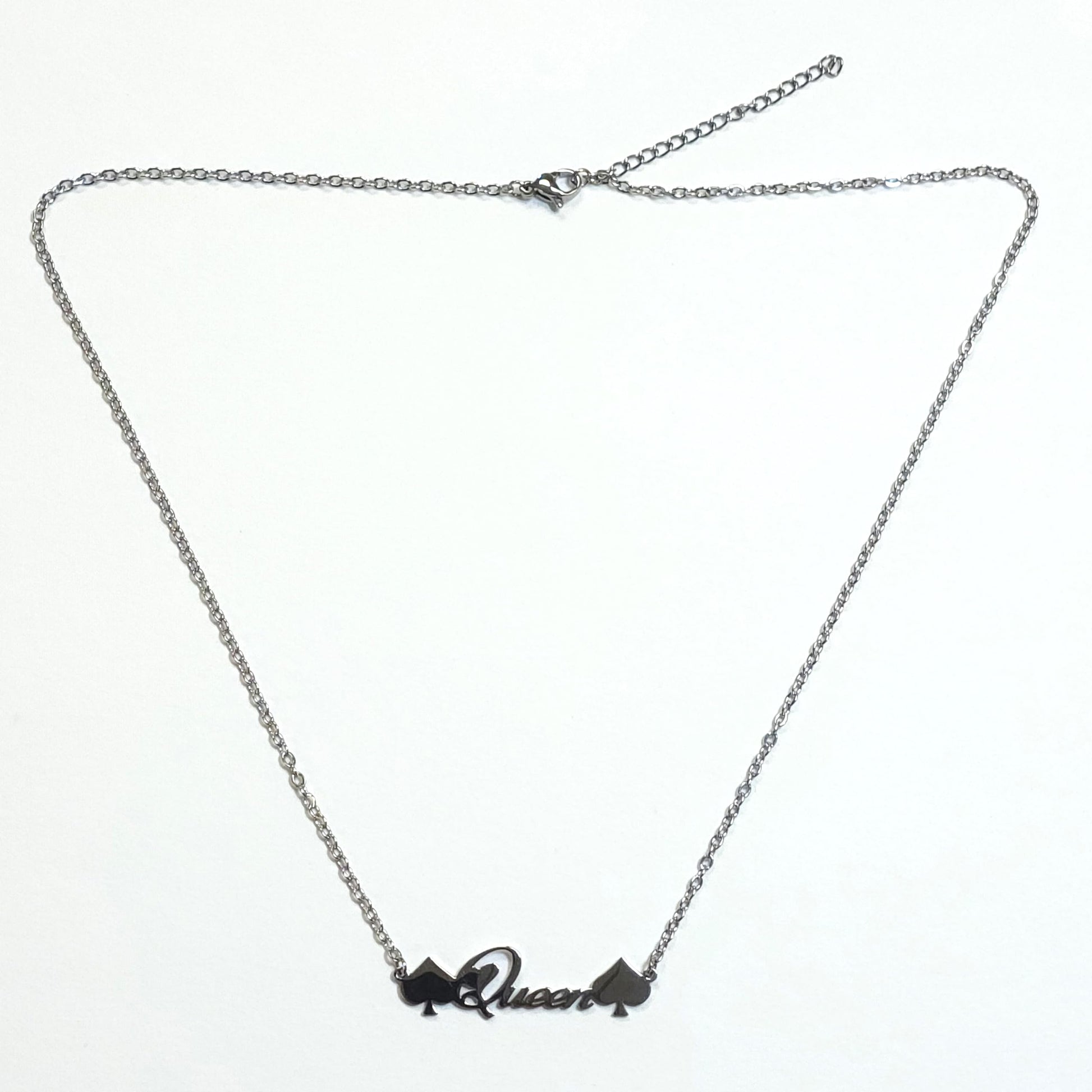 Silver or Gold Plated Stainless Steel Queen of Spades Necklace